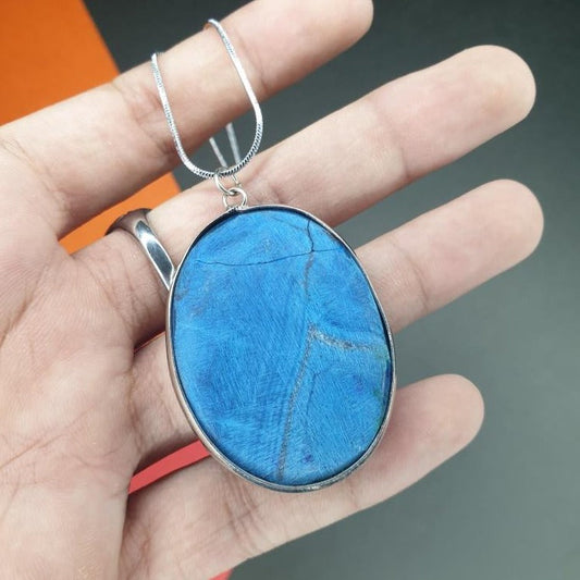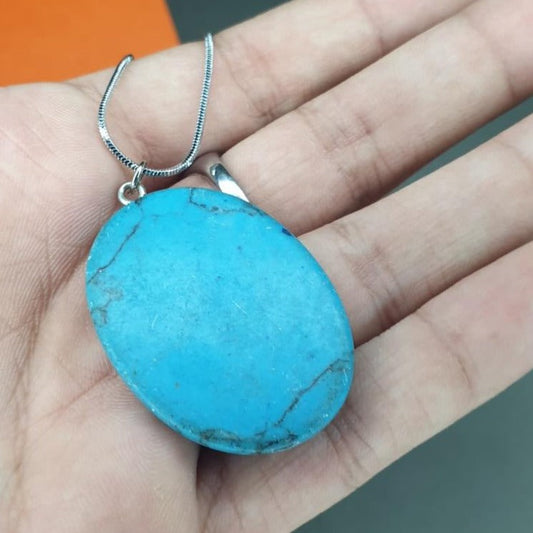 Blue Stone Pendant With Silver Lining