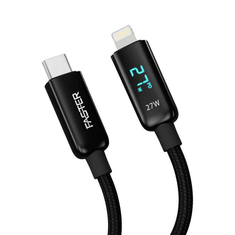 Faster 27W Nylon Braided Type-C to Lightening Cable with LED Display